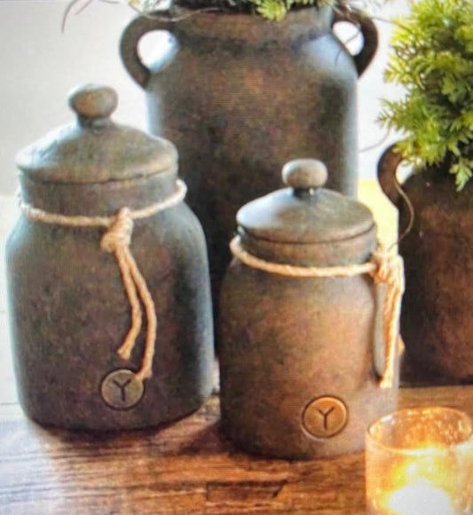 Decoratief oud stenen potje met deksel – bruin 🤎