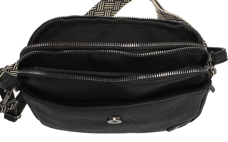 Sluiting: Flap met drukmagneet en twee aparte ritsvakken