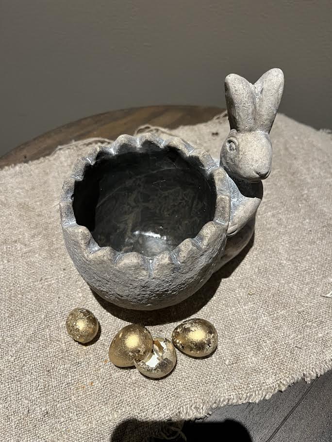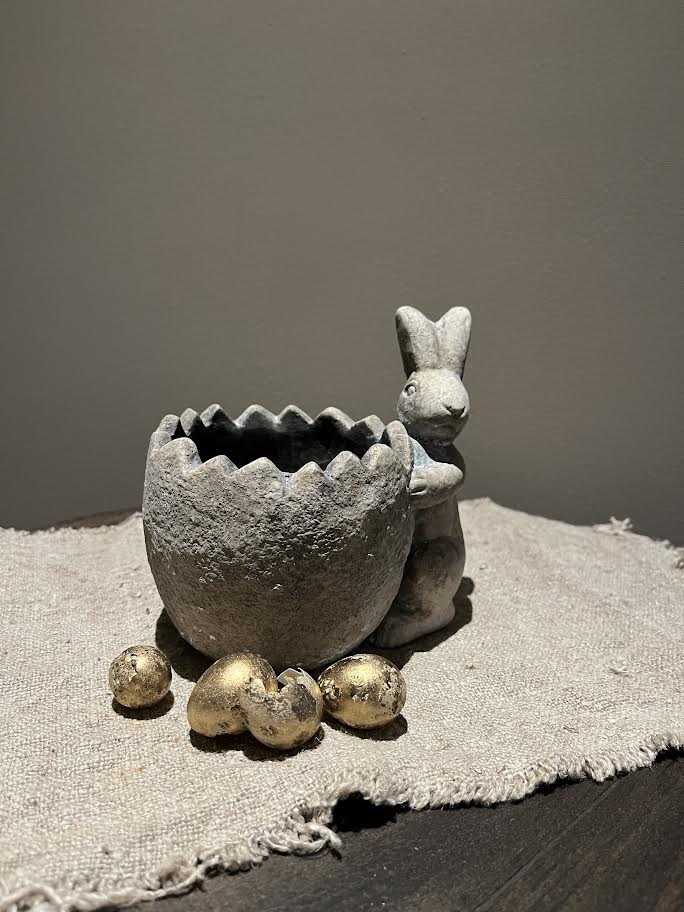 Leuke stenen bloempot met Haas. De bloempot met haas is 15 cm breed en 15 cm hoog.