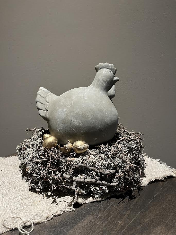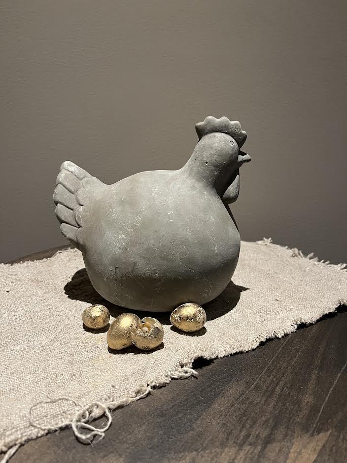Leuke Bolle grijze kip XL. Mooi te decoreren voor het voorjaar, in bijvoorbeeld een krans of bij andere kippen, of op een plateau.