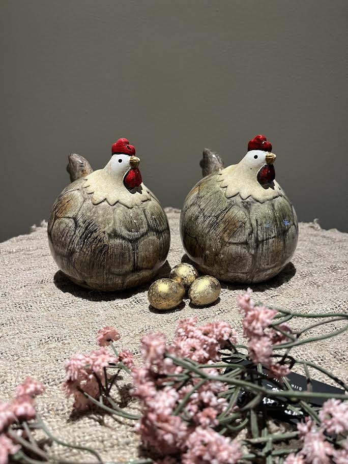 De kip is leuk te decoreren met een aantal eitjes, of op een krans of op een plateau.