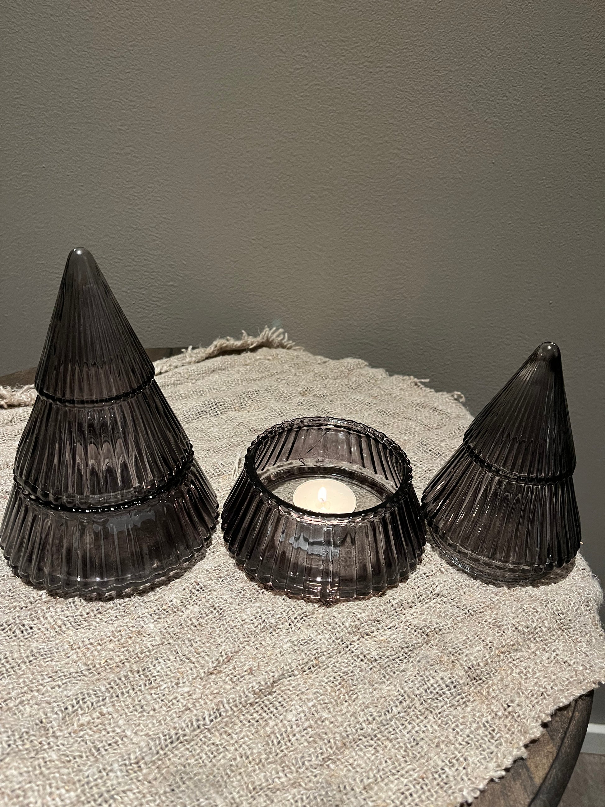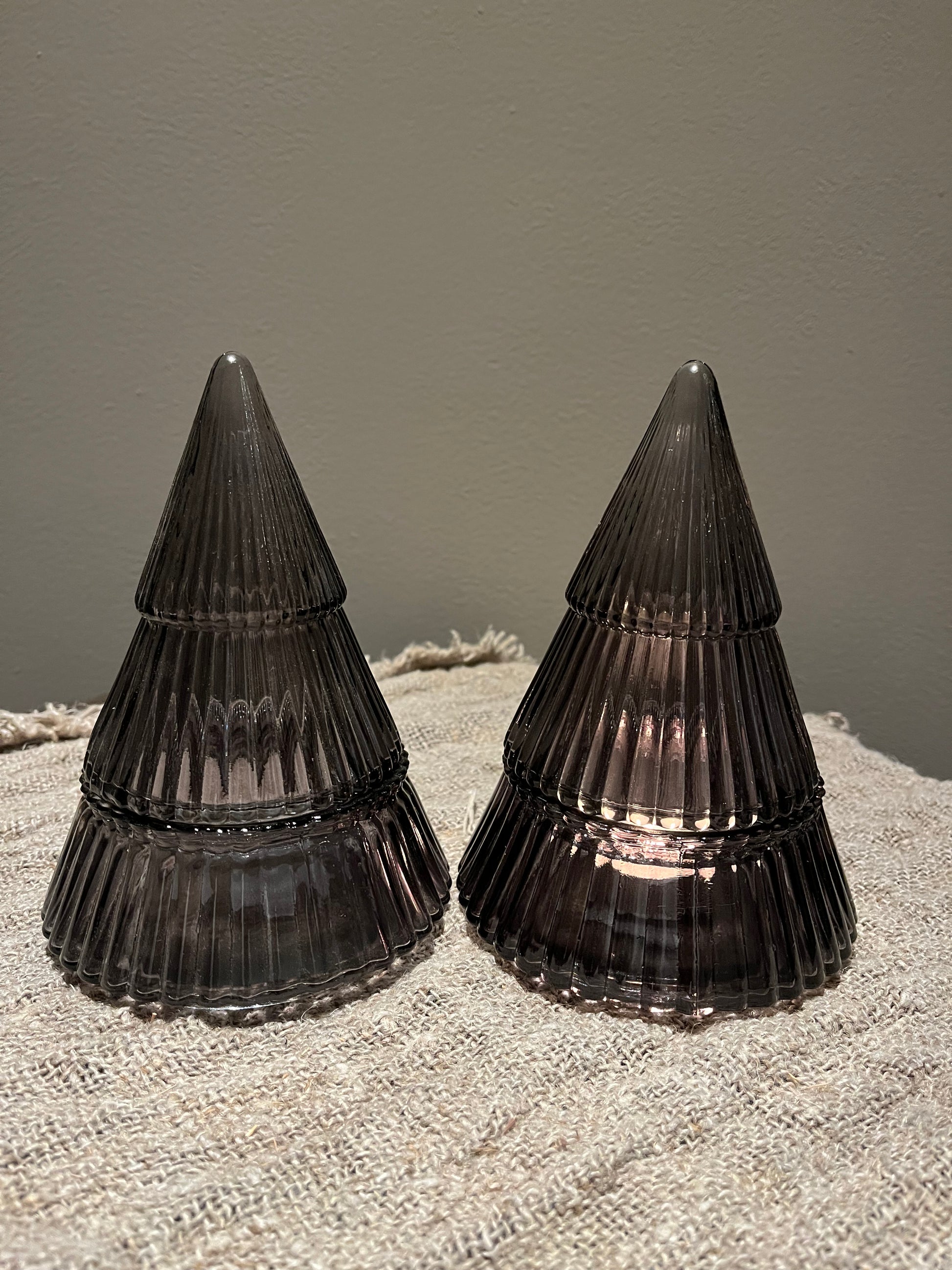 Leuke 2- delige glazen kerstboom. Je kunt hier een kleine stompkaars in zetten op led of een waxinelichtje op led. Geeft zeer mooie sfeer.