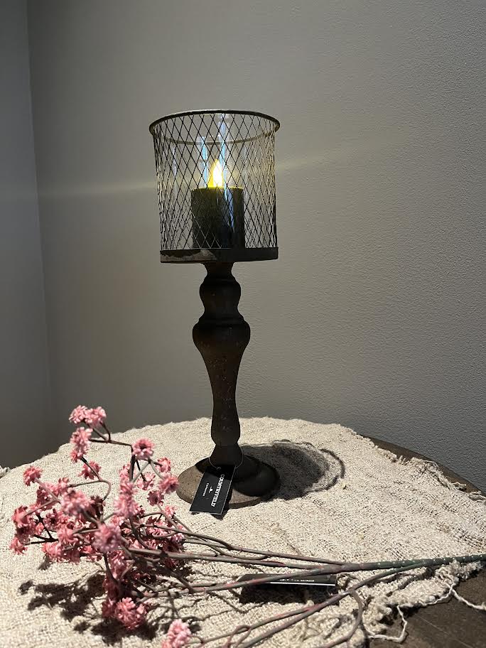 Prachtige stoer sobere roestbruine kandelaar op voet van Countryfield.