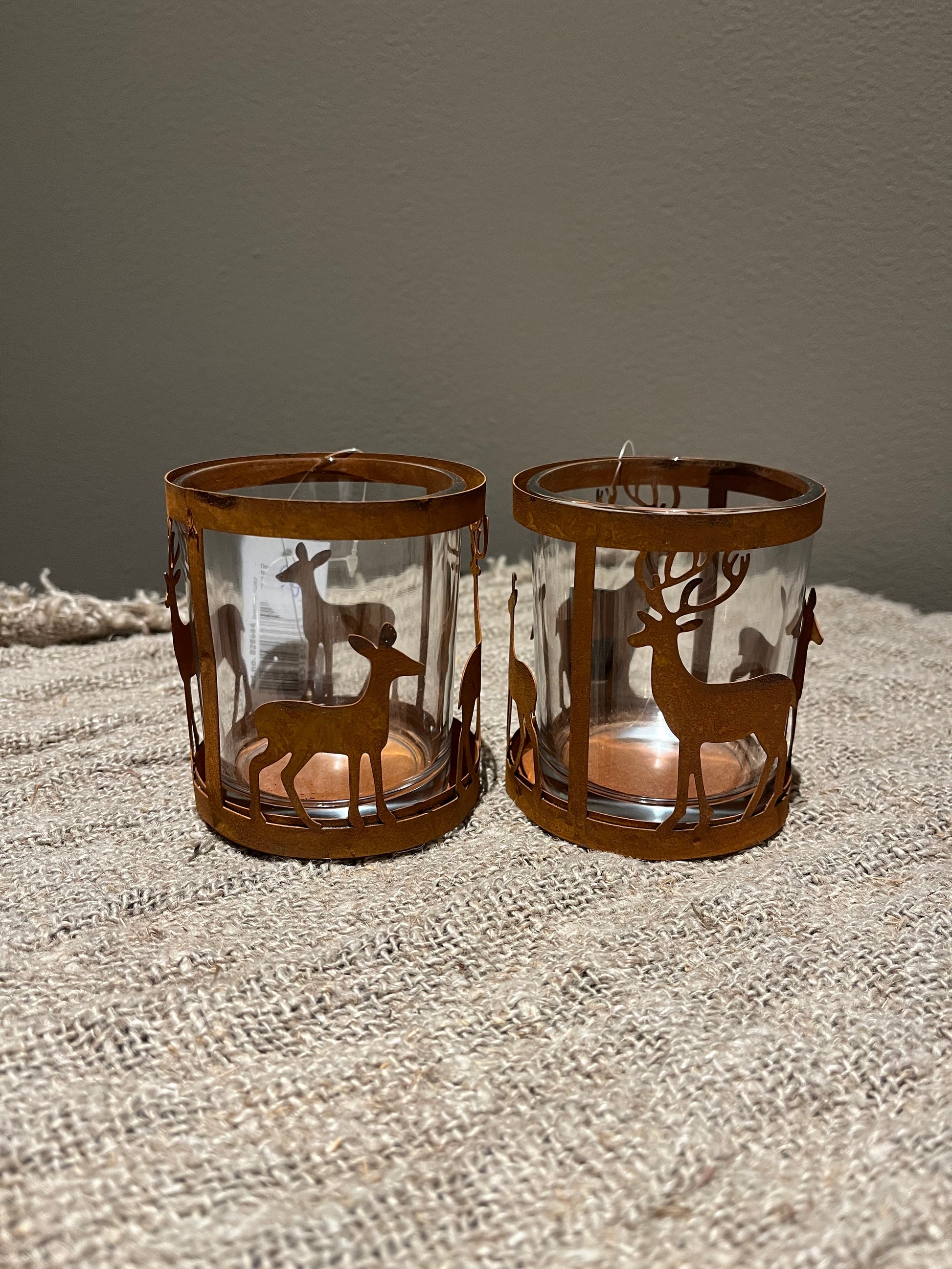 Leuke glazen roest herten theelichtje houder. Mooi te decoreren met meerdere roestartikelen.