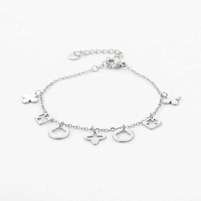 Trendy bedelarmband zilver.