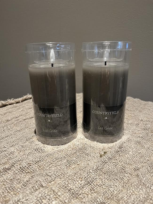 Grote grijs/taupe stompkaars. De kaars brandt op 2x AA batterij, deze batterijen zijn niet inbegrepen!