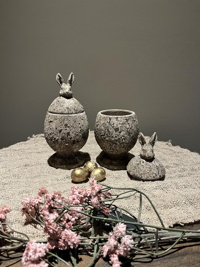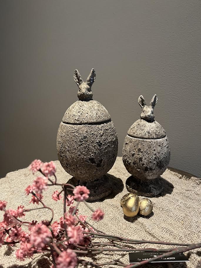 Het stenen potje met deksel is leuk te decoreren tijdens het voorjaar.