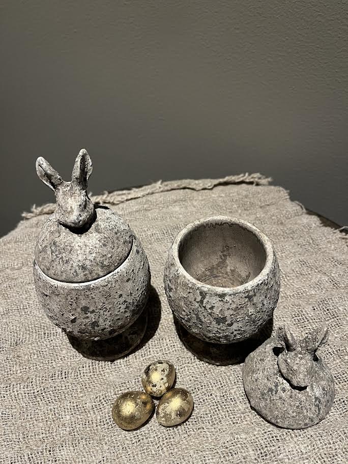 Haas potje met deksel in ei vorm