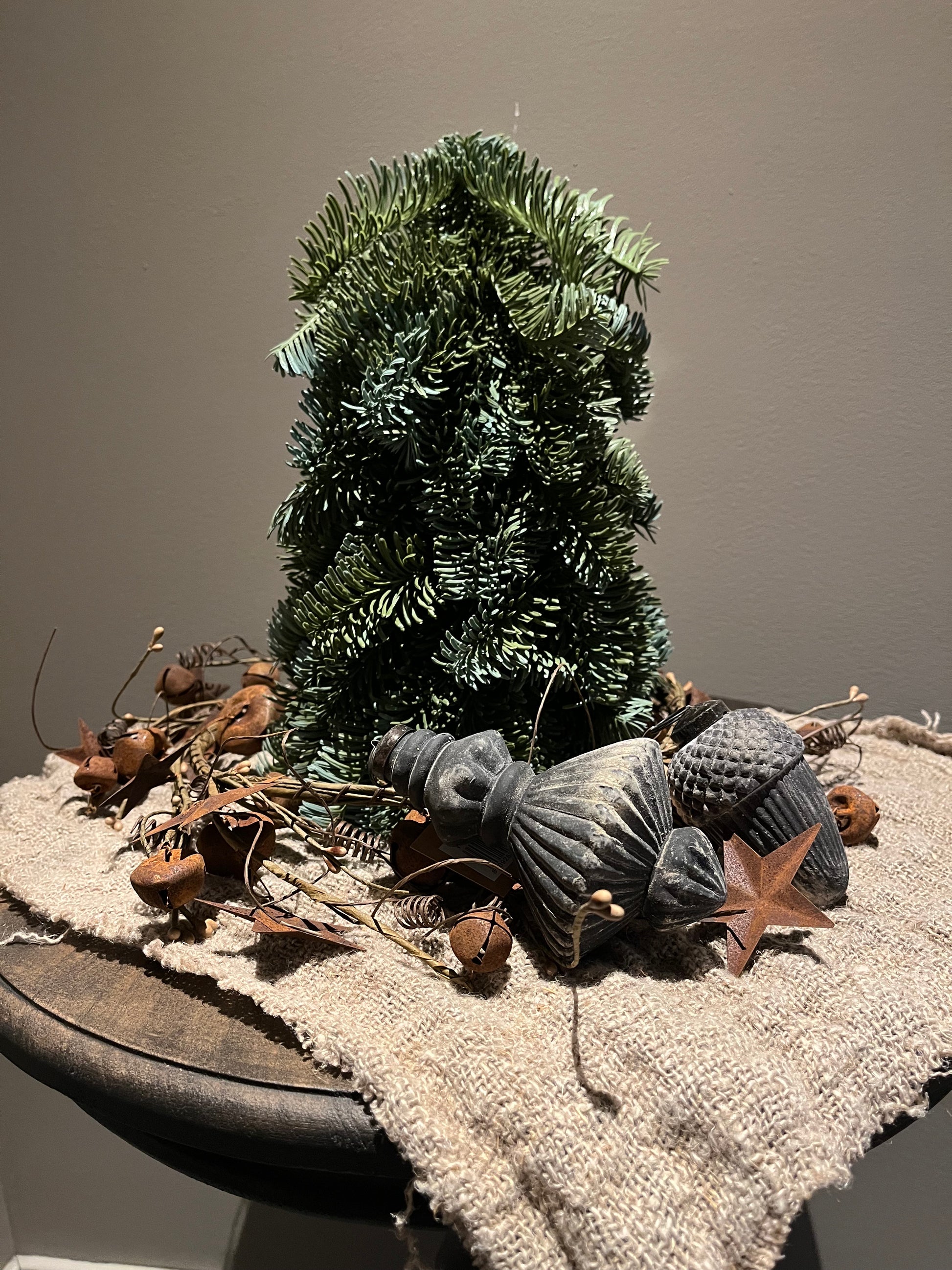 Prachtig nep nobilis boompje op houten stam. Het boompje is super leuk te decoreren met kerstartikelen. Het boompje is 20 cm breed en 30 cm hoog.