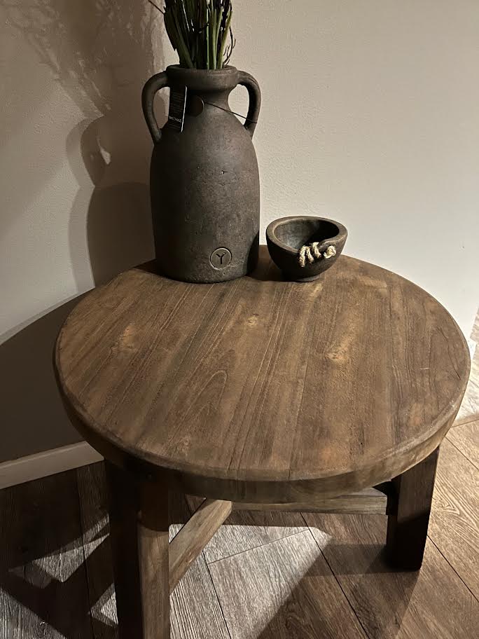Heel gaaf rond tafeltje. Leuk als bijzettafel te gebruiken of bijvoorbeeld als salontafeltje.