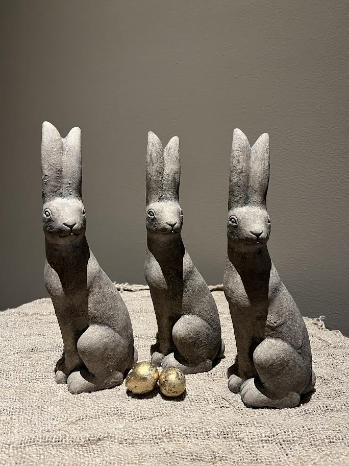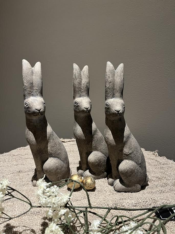 De haas is 24,5 cm hoog en 8 cm breed.