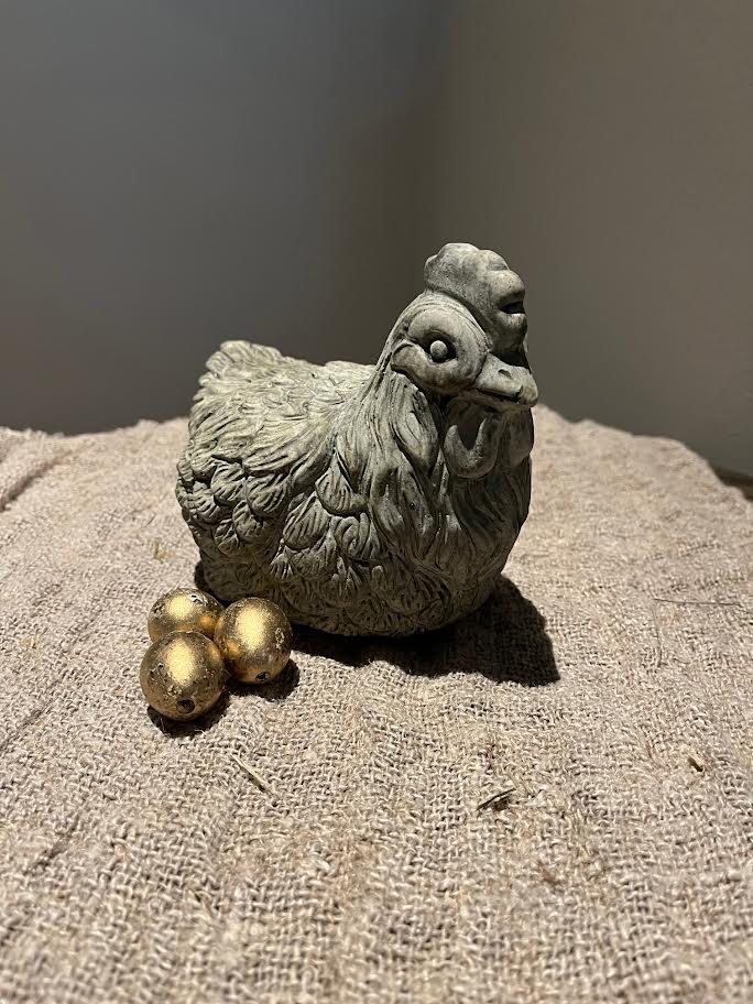 De stenen kip is een eye catcher voor in huis. Leuk om tijdens het voorjaar mee te decoreren. Leg er een paar eitjes bij en je hebt meteen voorjaarssfeer in huis.