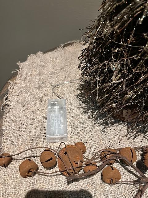 Gave kerstboom van natuurlijke takken, met een brons/bruine kleur en lichte glitters. De kerstboom heeft lampjes, die werken op 2 AA batterijen ( niet meegeleverd).