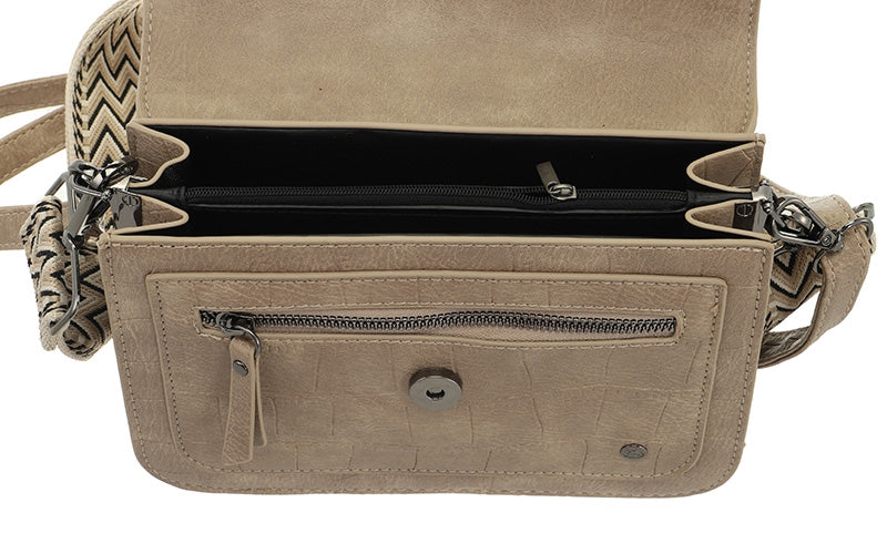 Geef je outfit direct een luxe uitstraling met de Skala. Deze ruime crossbody met trendy croco-print pas je dankzij de twee meegeleverde banden moeiteloos aan elke gelegenheid aan.
