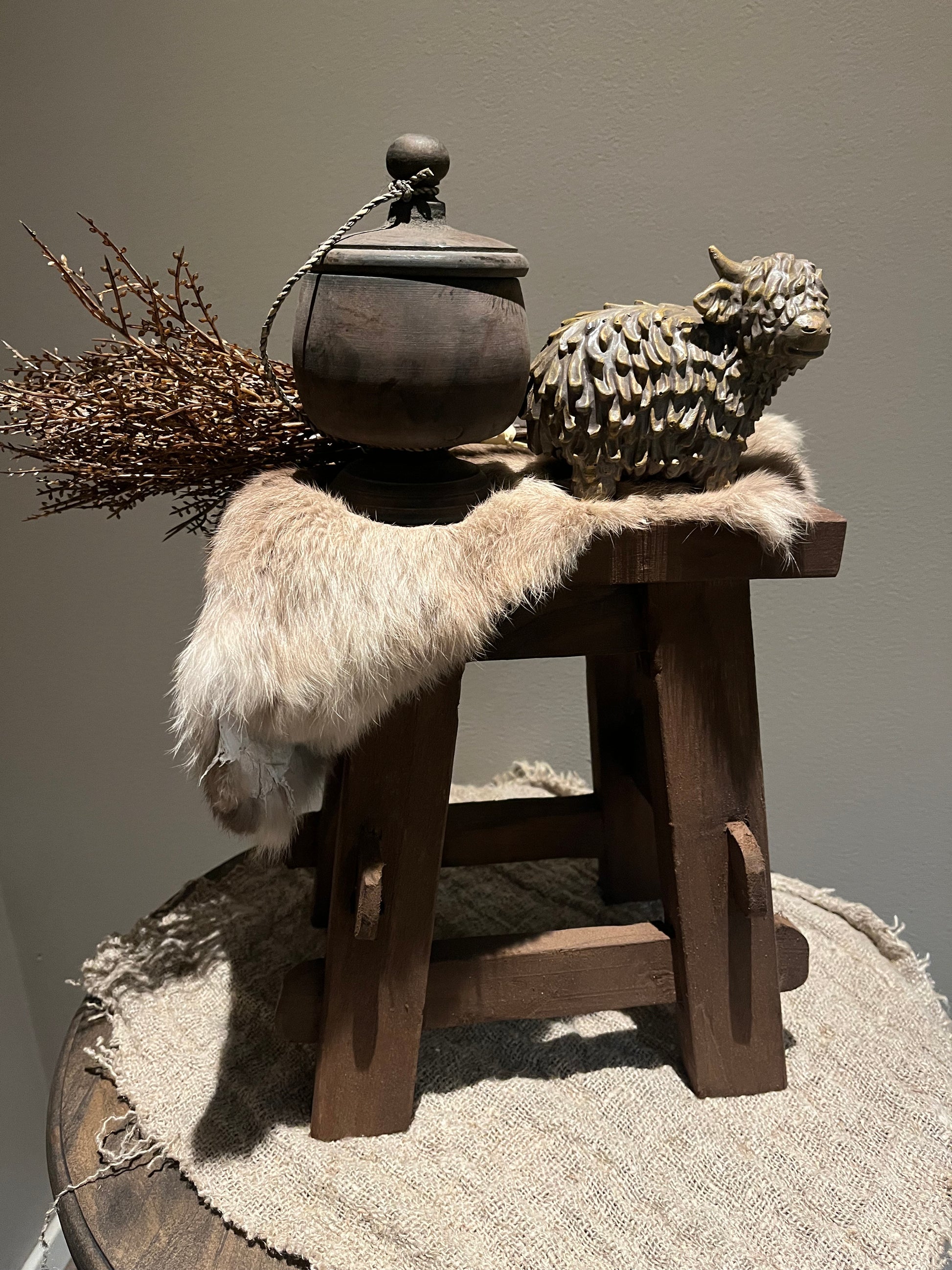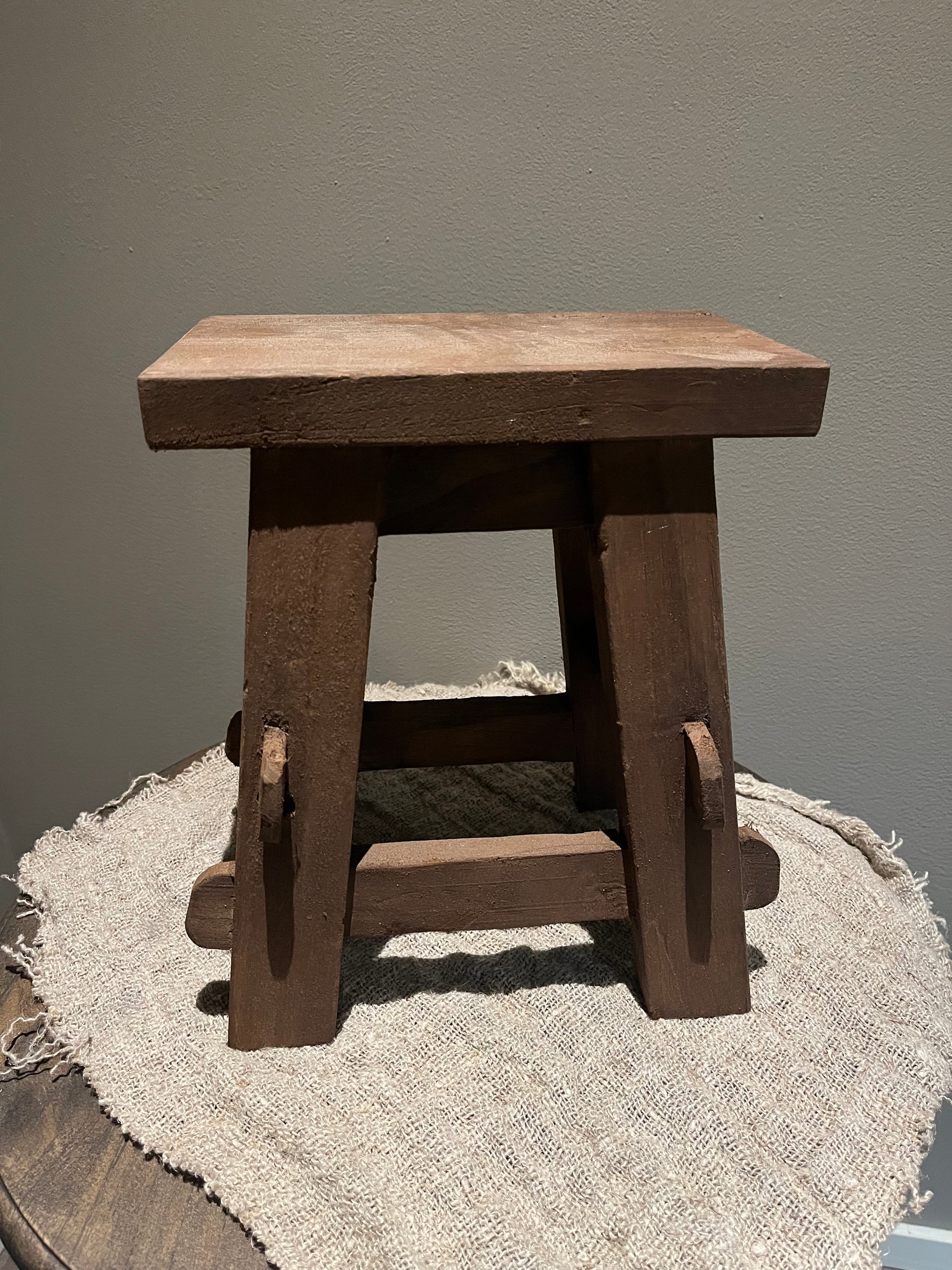 Prachtig houten vensterbank krukje. Het krukje is 30 cm hoog en 24 cm breed. Het krukje is donker van kleur. Mooi met diverse artikelen te decoreren.